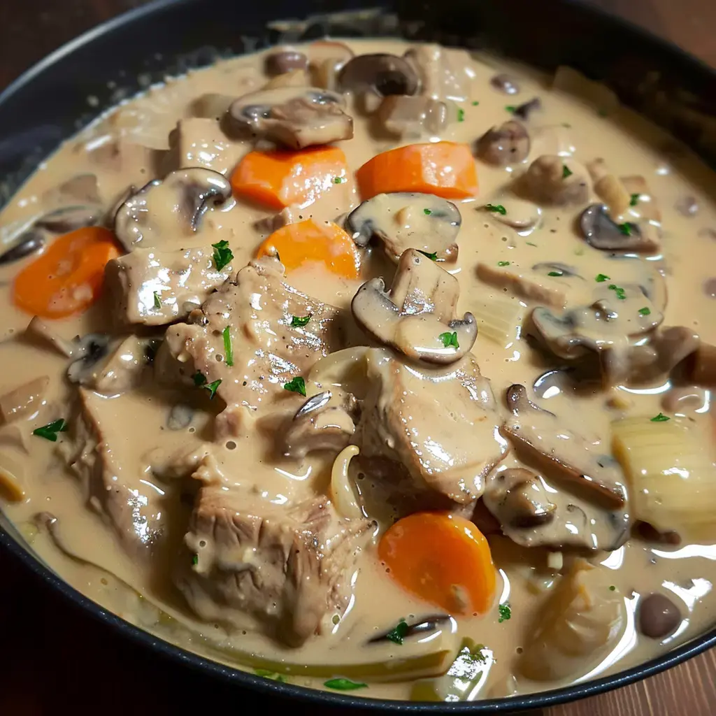 Quick comfort food featuring ground beef, sour cream, and mushrooms in a creamy sauce. Best served on egg noodles.