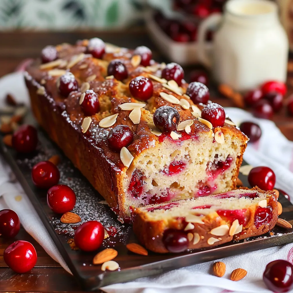 This homemade cherry-almond loaf blends sweet cherries with nutty almond flavors in a soft, juicy bread. The wonderful mix of nuttiness and fruit creates a memorable snack that feels like something from a fancy European shop. Cut into it and you'll find bursts of bright cherries tucked inside the light, golden bread.