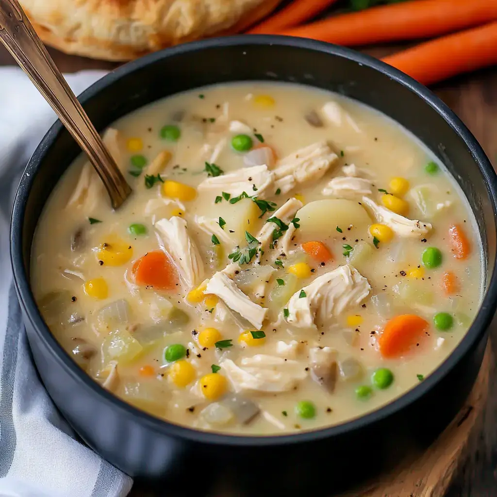 This cozy soup brings that chicken pot pie feeling—no crust hassle. It's got creamy goodness, lots of chicken, and loads of veggies. All the flavor you love in one pot, right when you want to warm up fast.