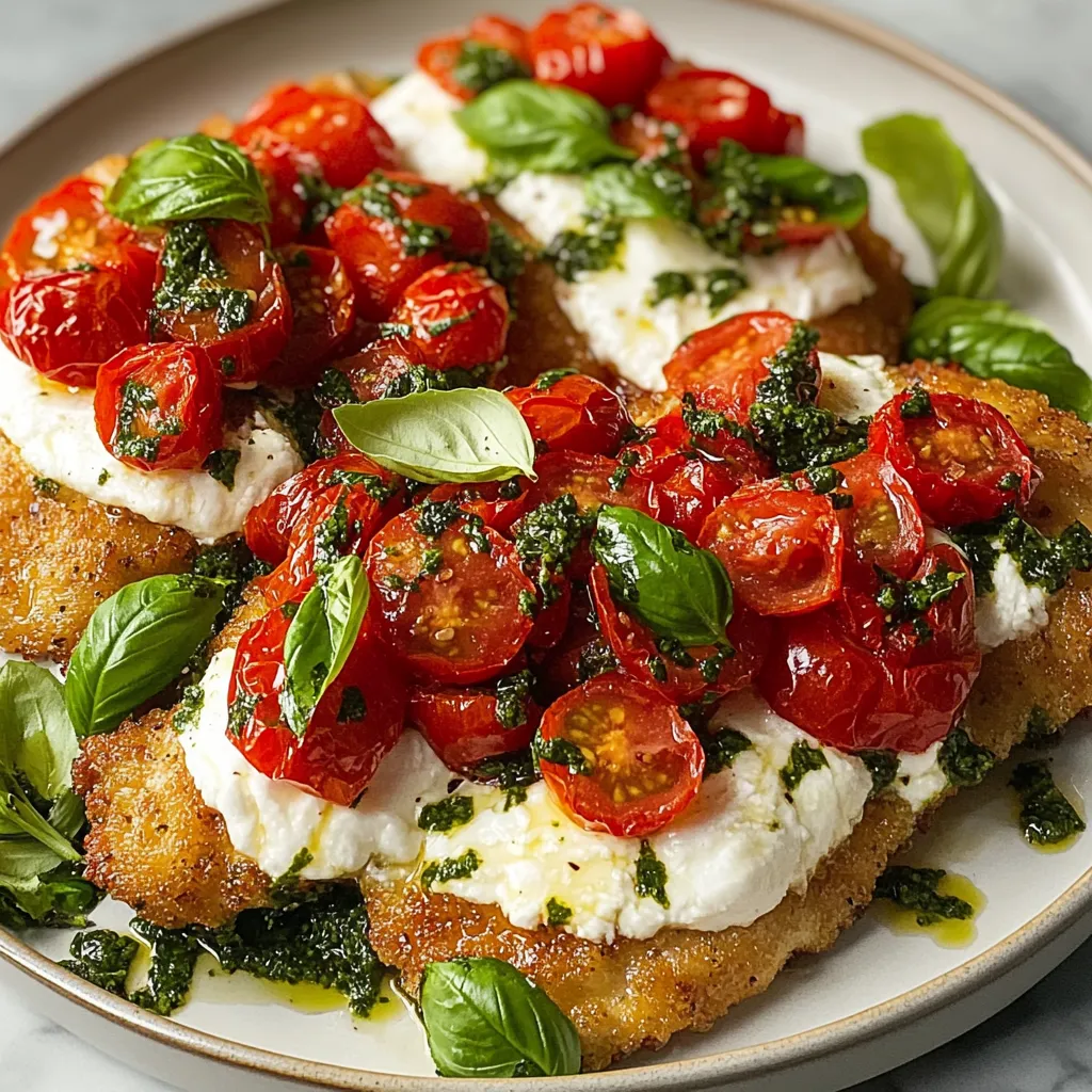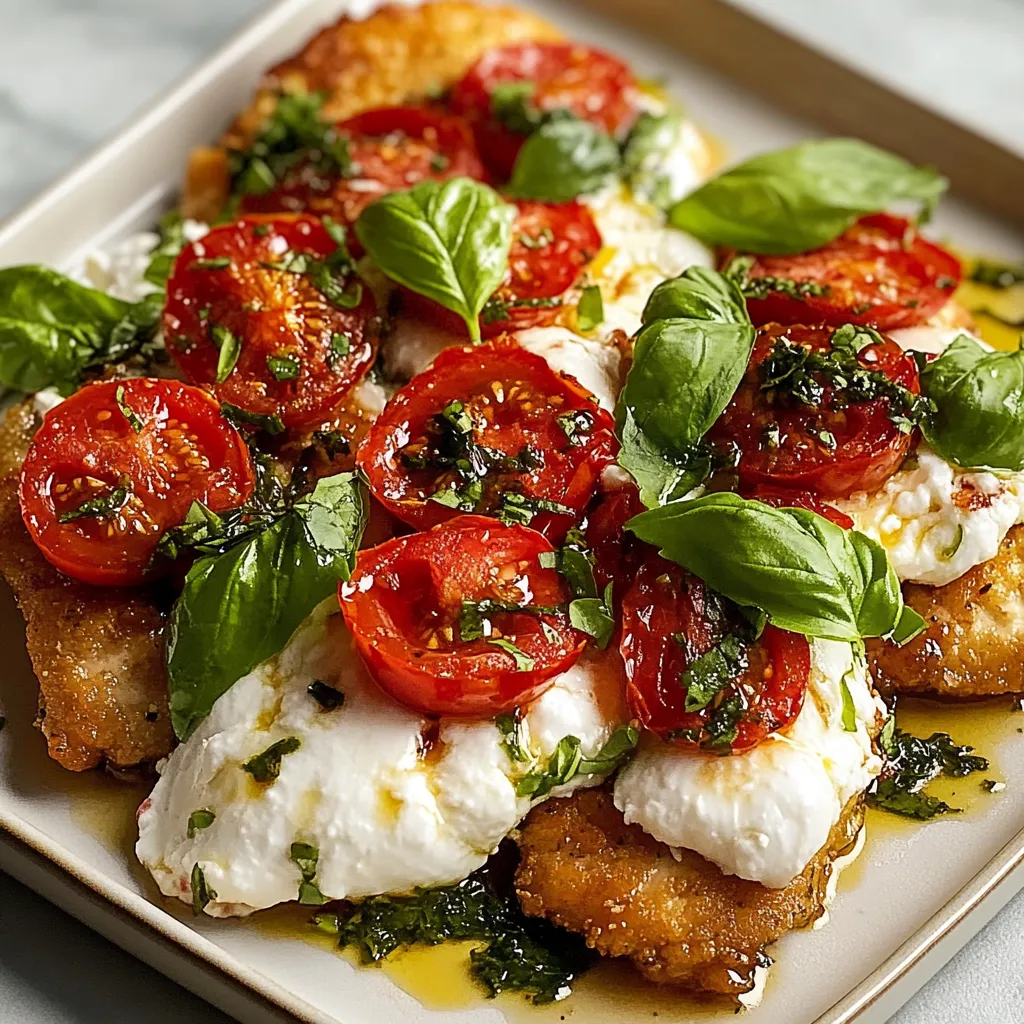 Each mouthful of this rustic Italian creation combines wonderfully crisp golden chicken, sun-kissed burst tomatoes, aromatic basil, and smooth burrata. This fancy yet doable dinner turns everyday ingredients into something you'd expect at a nice restaurant—it looks just as good as it tastes.