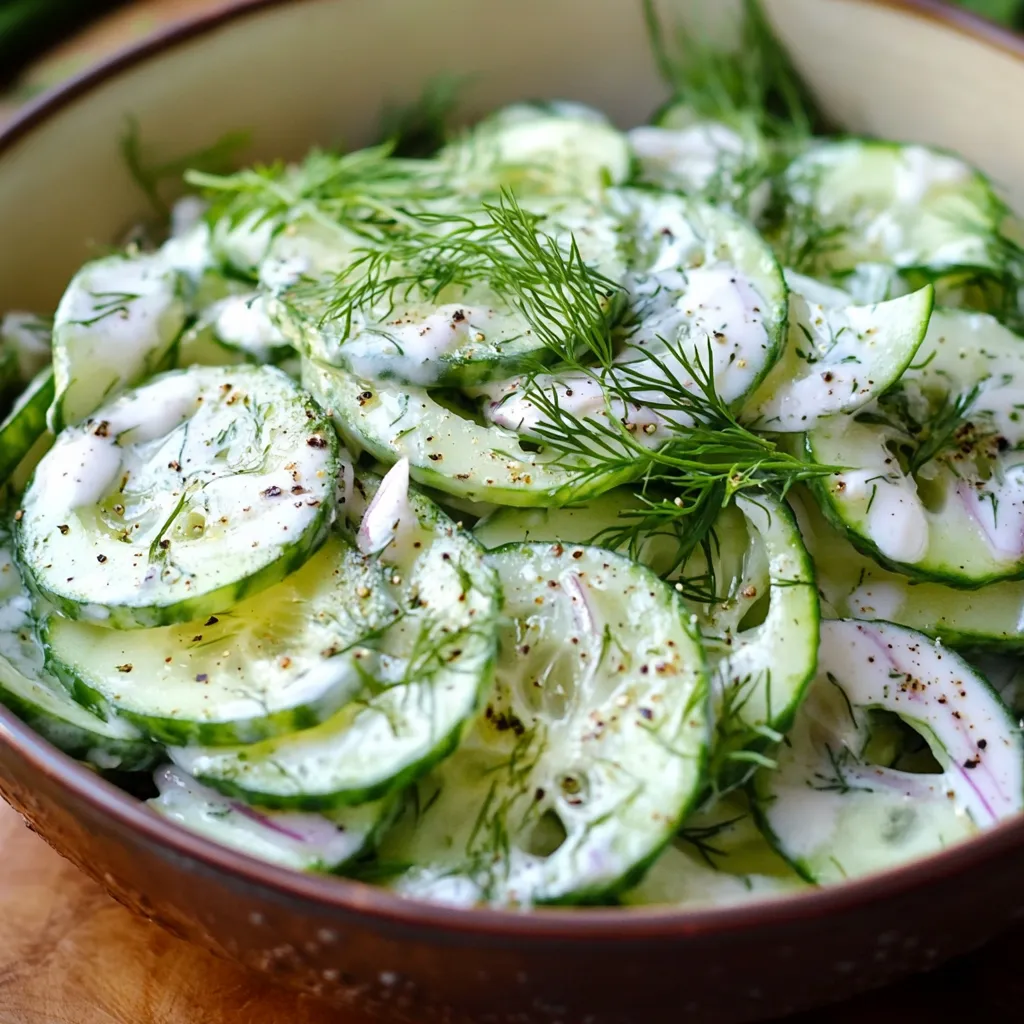 Cool, crunchy cucumber chunks bathed in velvety yogurt sauce, livened up with garden-fresh dill and gentle garlic touches. This mix brings you straight to summer's garden bounty, where cucumbers thrive and herbs fill the air with fragrance. Every mouthful balances the perfect mix of snappy veggies and zingy creaminess, making it your go-to for hot days and backyard get-togethers.