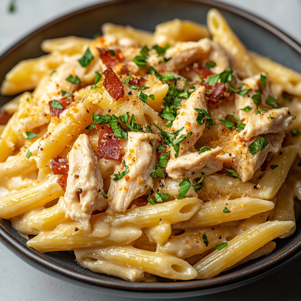 This dish works great for busy weeknights or prepped ahead for lunches. The mix of silky sauce, juicy chicken, and crispy bacon bits makes a crowd-pleasing comfort meal everyone will ask for again.