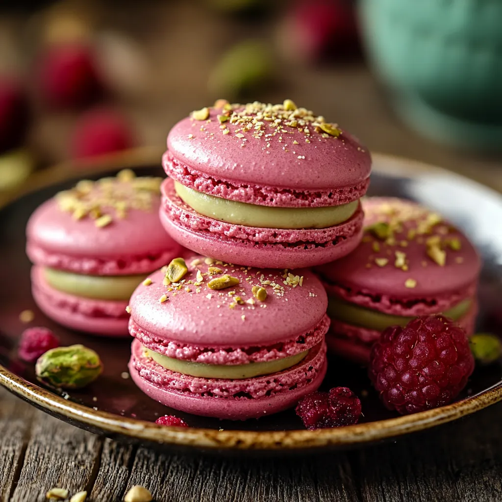These Pistachio Raspberry Macarons blend the rich nuttiness of pistachios with tangy raspberry notes, creating a French treat that's both fancy and down-to-earth. Every mouthful gives you that wonderful contrast between the crunchy outside, soft inside, and creamy filling that makes macarons so darn good.